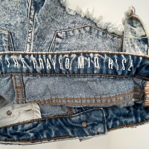 Style: Marbled, Button Fly, The Frayed Mid Rise, Denim, Jean, Cut Off, Rough Hem, Raw Hem, Spring, Summer