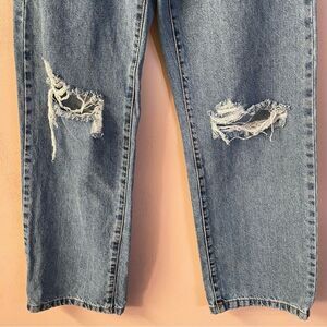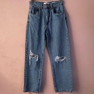 Cotton On Medium Wash Blue Ripped Knee Loose Straight Jean Size 4 EUC