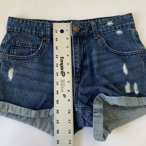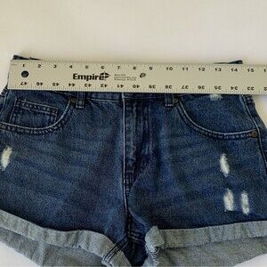 Cotton On Mid Saturday Denim Shorts Women 4 Dark Roll Cuff Distressed Festival