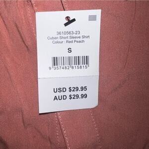 Cotton On NWT Men's Cuban Short Sleeve Buttoned Shirt Red Peach Size Small