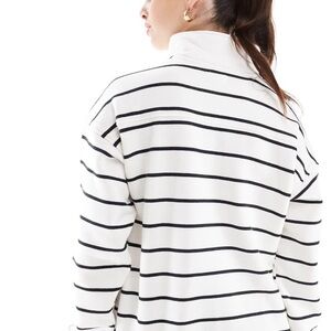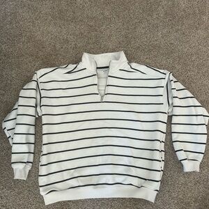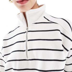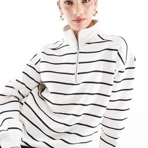 Cotton On Oversized Collar Quarter Zip Black and White Striped Sweatshirt. Sz M