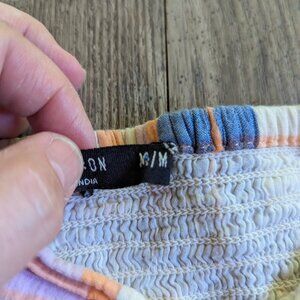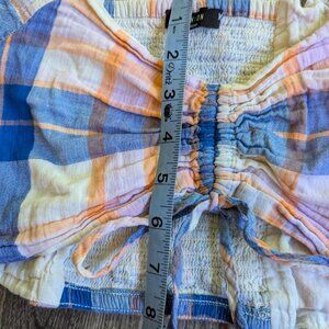 Cotton On Plaid Smocked Puff Sleeve Crop Top – Blue Peach Cream – Size M