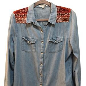 Cotton On Shirt Womens Medium Denim Aztec Western Snap Embroidered Top