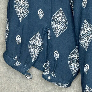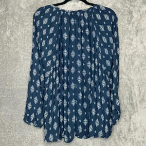 Cotton On Small Shirt Top Navy Blue White Paisley Long Sleeve Keyhole Scoop Neck