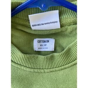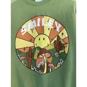 Cotton On Smiley Green Happy Face Cactus Sun Boho Hippie Crewneck Sweatshirt XS