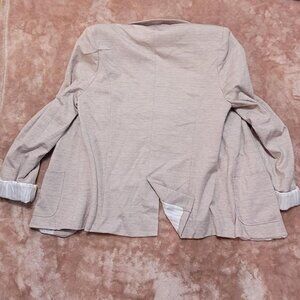 Tan and cream linen blend blazer with white striped lining #linenblend