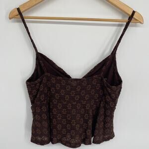 Cotton On Top Womens Medium Croquet Brown Floral Lace Milkmaid Feminine Romantic