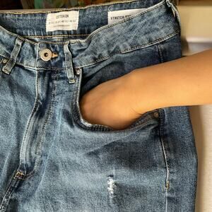 Cotton On Women Waxed & Ripped Denim Stretch Straight Leg Jeans size 8 US, Blue