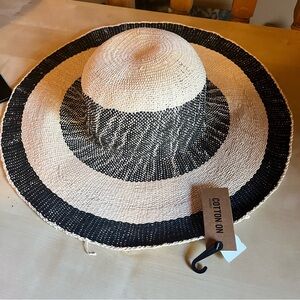 Cotton On Women's Black & Beige Straw Wide Brim Striped Sun Hat Size OS NWT