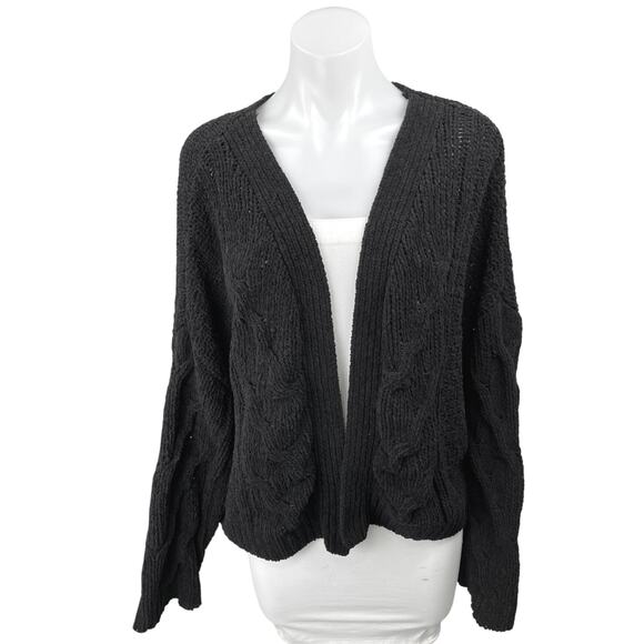 Cotton On Women's Black Ribbed Knit Long Sleeve Open Cardigan Sweater Top Size L