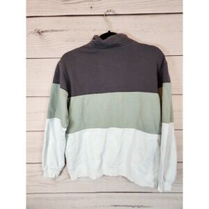 Cotton On Womens Gray Green White Colorblock Quarter-Zip Sweatshirt, Size L