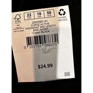 Cotton On Womens Plus Size 18 Black Active Hi-Waist Mis-Length Bike Shorts NWT