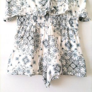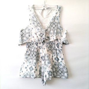 Cotton On Womens White Tie V-Neck Flared Floral Rompers & Jumpsuit Size L