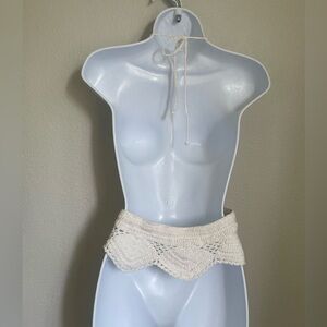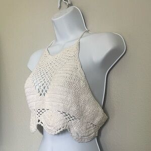 Cotton On XL Cream Crochet Halter Crop Top – Boho Festival Adjustable Tie Back