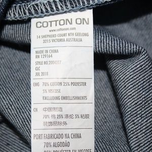 Material: 70% cotton, 5% Viscose, and 20% Poly
