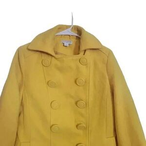 Cotton On Women's Canary Yellow Poly/Viscose Fleece Lined Short Double Breasted Coat EUC sz M