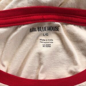 Little Blue House Long Sleeve T-Shirt, Cream with Red Crew Collar & Buffalo Plaid Bear Appliqué On the Front. 100% Cotton, Size L