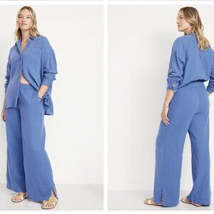 High-Waisted Wide Leg Crinkle Gauze, Lightweight Cotton Resort Pants