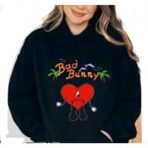 Cotton Plus Bad Bunny Womens Size M Black Pullover Hoodie