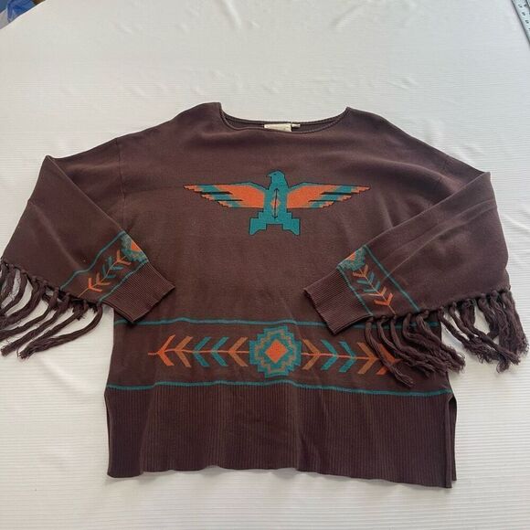 Cotton Rye Outfitters Brown Thunderbird Fringe Sweater Size Medium