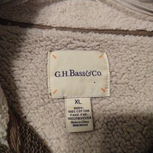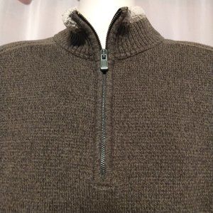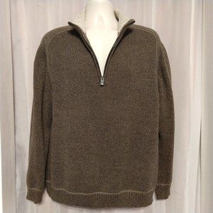 Nice sweater in great condition. Medium weight knit w/ heavy ribbed cuffs, hem & collar. Heavy duty 1/3 zip. High collar (2.5") is lined with "faux fur" (per the tag).