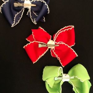 Cotton Tails "3 Hair bow clips in scalloped edge"