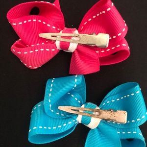 Cotton Tails "Set of Hair bow clips in Stitch Ribbon Pink and Blue"