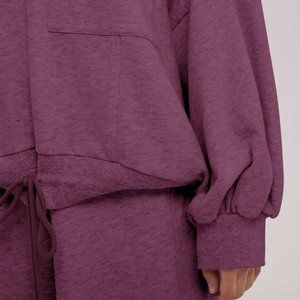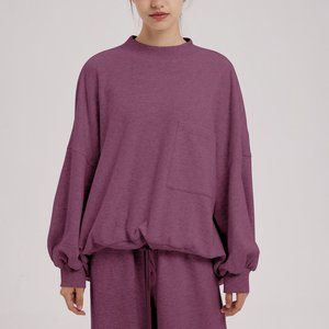 T: It has a drawstring elasticated on the hem to free adjustment your style. It also features a patch pocket, mock neck, and slouchy silhouette that offer a comfy and home fit. And the classic knit design on cuffs, hem, and collar.