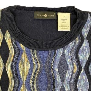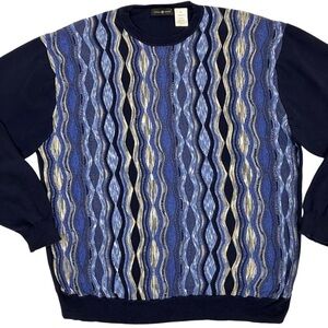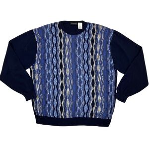 Cotton Traders Coogi Style 3D Textured Crewneck Sweater Blue 100% Cotton Sz XXL