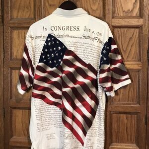 Cotton Traders Sport Patriotic Polo. Men's size XXL, Congress, Declaration, 4th of July, USA Flag Shirt.