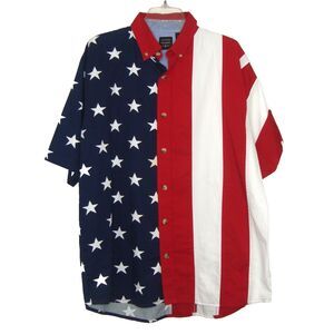 Cotton Traders Sport USA Flag Patriotic Button Front Short Sleeve Shirt Size L
