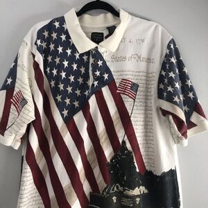 Cotton Traders Sport America Flag Declaration of Independence Polo Shirt Size XLG.