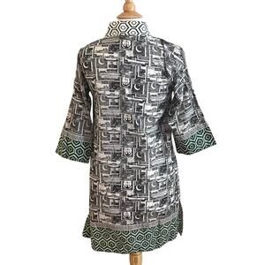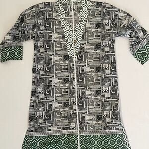 Cotton V-Neck Tunic/Kaftan Geometric Print Pakistan Stamp Print, Size XS