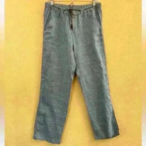 Cotton World 100% Linen Chambray Blue Pant With Belt Size Medium EUC!