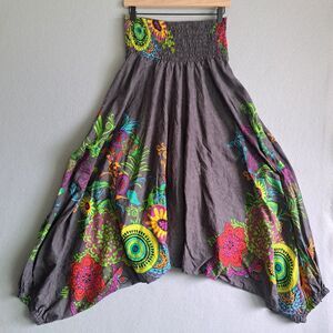 Cotton Yoga Festival Harem Drop Crotch Pants Nepal Gray Hippie One Size Boho