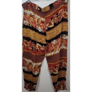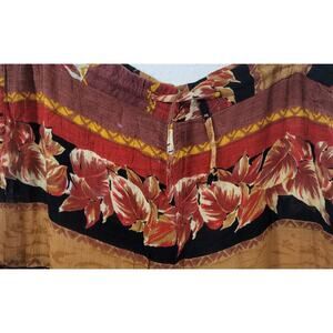 Cotton Zone Brown Black Floral Print Pants Large Lightweight Drawstring Waist