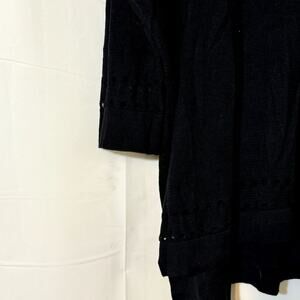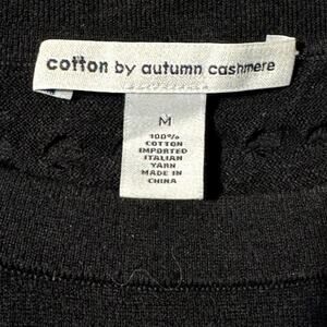 Wrap yourself in the effortless elegance of this Cotton by Autumn Cashmere sweater. This black pullover features a flattering crew neck and unique cut-out details that add a touch of intrigue to your ensemble. Crafted for comfort and style, this sweater is a versatile addition to your wardrobe. Easy to care for, it's machine washable. Features hi/low hemline. Cutouts around neckline bottom of sleeve and bottom hem