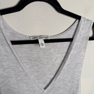 Keywords: Cotton by Autumn Cashmere, gray dress, knit dress, sleeveless dress, maxi dress, pleated dress, casual dress, summer dress, v-neck dress, long dress, comfortable dress, lightweight dress
