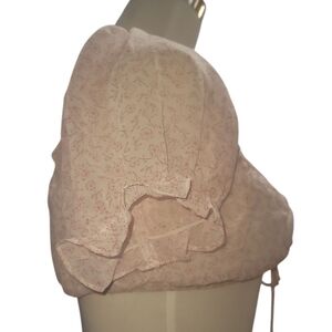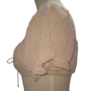 Cotton candy LA pink white sheer Floral Puff Sleeve crop top Blouse small