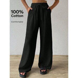Cotton drawstring pants textured wide leg pants boho mocha brown tan