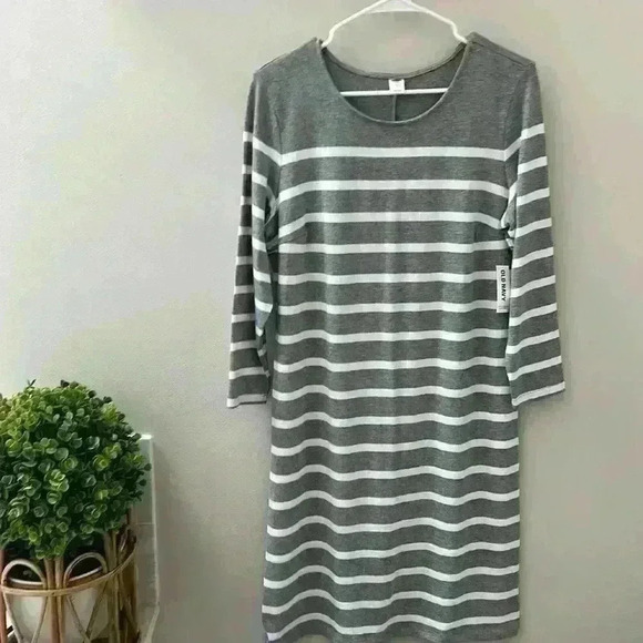 Old Navy brand dress gray and white striped three-quarter sleeves, tag still attached
