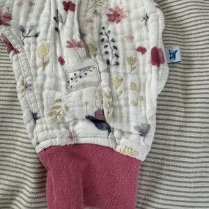 Little Unicorn brand floral print zip up cotton gauze baggie romper. Baby girls size 18-24 months.