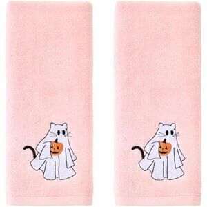 Cotton hand towel set 2 piece Halloween ghost cat decorative kitchen bath gift p