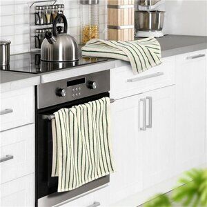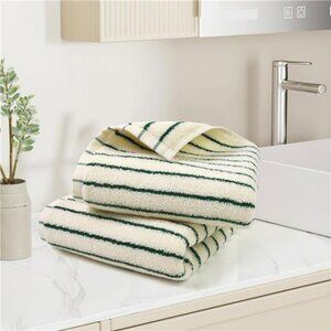 Cotton hand towels set of 2 absorbent green striped bathroom kitchen tea towels