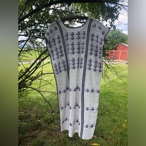 Vintage with duck motif. Lightly worn. Originally purchased from Vintage Jesus amazing collection. Price firm. One light stain at bottom of dress. Loose fit from small to meduim