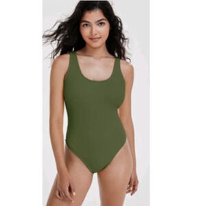 Cotton on Women's Low-Back One-Piece Swimsuit Khaki Crinkle Size S