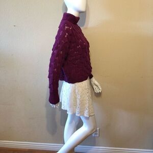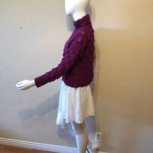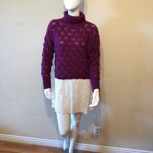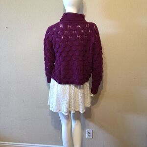 Knit with a scalloped stitch, this cozy turtleneck sweater boasts a dragon-scale texture that's both fierce and fun. This style fits true to size (S=0-2), (M=4-6) & (L=8-10). Photos are of large.