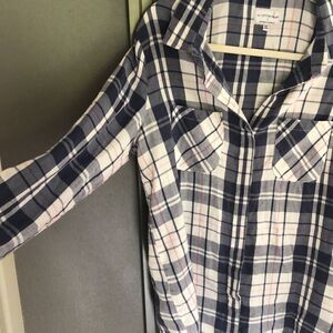 Cotton On Blue plaid, long sleeve button down blouse, shirt, size S
