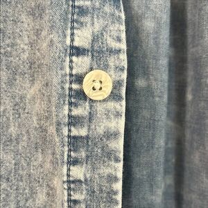 Stylish denim button-up shirt. Features a classic collar and chest pocket. Perfect for casual wear.