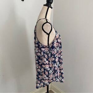 Cotton On Floral Sleeveless Ruched Racerback Blouse Large Navy Pink Cottagecore